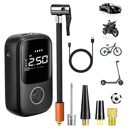 Pompa ad aria elettrica con display LCD digitale e luce LED, 150 PSI compressore d'aria elettrico, batteria da 4000 mAh, ricaricabile per bicicletta, moto, auto palla
