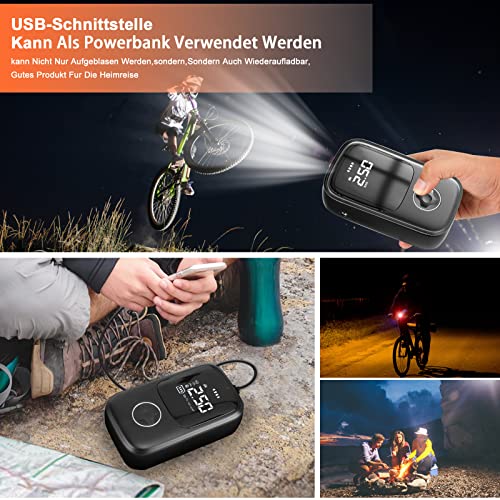⚽【Compressore a Batteria Multifunzione】: Questo compressore portatile per auto ha diverse valvole aggiuntive per diverse applicazioni. È adatto per auto, moto, biciclette, e-bike, monopattini elettrici, sedie a rotelle, palloni da basket, calcio, pallavolo, ecc. Il prodotto unisce funzionalità ed estetica, ed è adatto per l'uso all'aperto, in viaggio e in bicicletta.