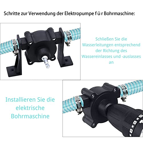 Ampia applicazione: funziona perfettamente con la maggior parte dei trapani elettrici a mano. Basta collegare il tubo dell'acqua al morsetto del tubo e inserire il trapano elettrico per utilizzarlo. La pompa elettrica è adatta per il riempimento di liquidi come acqua, olio, diesel, ecc. Perfetto per pulire auto, giardino d'irrigazione, piscine a pompa, acquario, ecc.