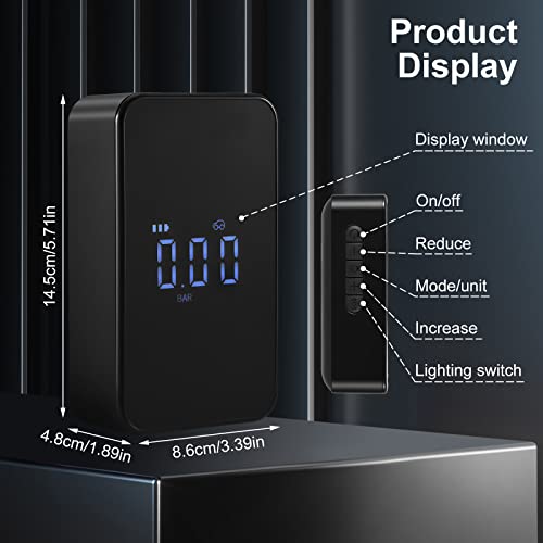 【Pompa per pneumatici multifunzionale】 Gonfiatore per pneumatici per auto con un ampio display LCD digitale, puoi controllare facilmente il valore della pressione. Dopo aver collegato la valvola del pneumatico, visualizzerà la pressione attuale del pneumatico e monitorerà sempre la pressione precisa del pneumatico. Illuminazione ad alta luminosità integrata, SOS, segnale di emergenza lampeggiante lento e modalità di avviso lampeggiante veloce