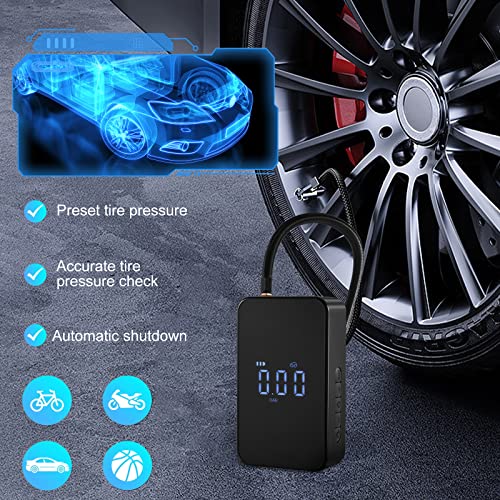 【Compressore d'aria portatile】 Gonfiatore per pneumatici per auto con ampio display LCD, nessun cavo di alimentazione per l'alimentazione dell'auto, gonfiaggio rapido, spegnimento automatico, quattro modalità di gonfiaggio, LED SOS, funzione di misurazione della pressione, inclusa borsa per il trasporto e tubo di gonfiaggio da 40 cm. La pompa per pneumatici elettrica portatile è un regalo ideale per te, la famiglia o gli amici.