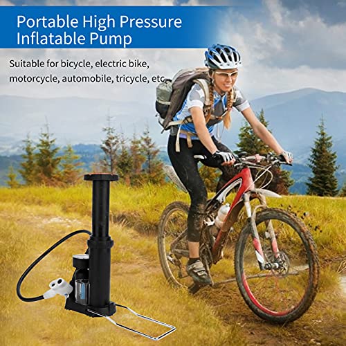 Pompa gonfiabile per bici, mini pompa ad aria portatile per bici da pavimento ad alta pressione Pompa gonfiabile con 2 valvole per bicicletta, bici elettrica, moto, automobile, triciclo