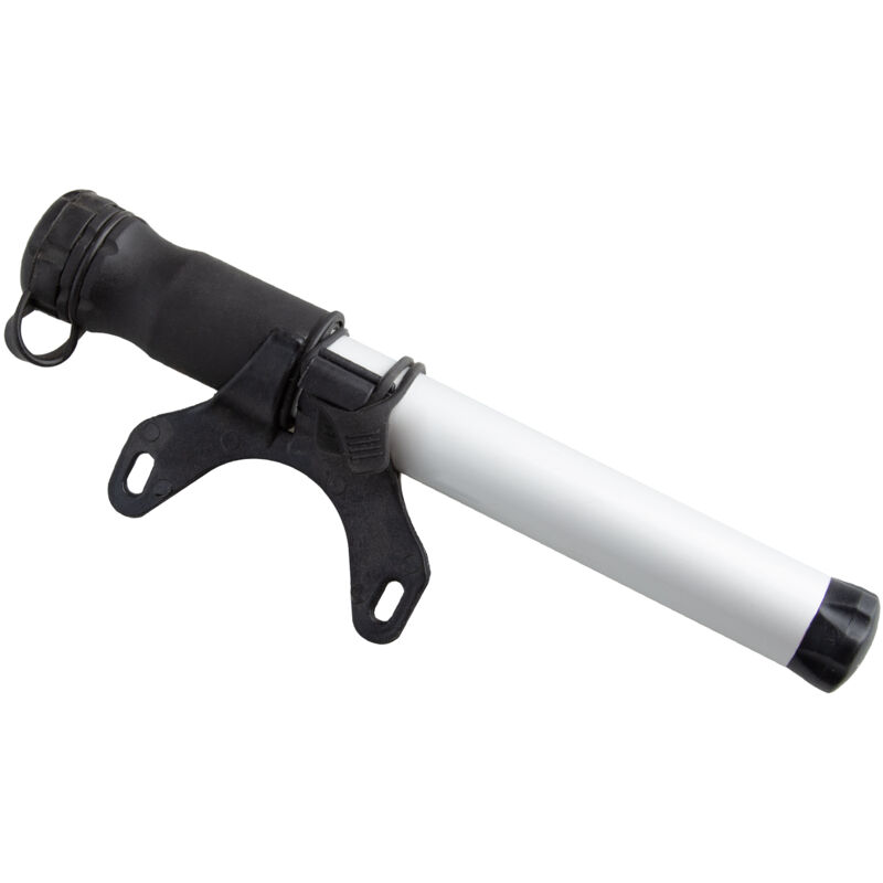 Pompa di gonfiaggio per biciclette in plastica. Include tubo di prolunga e valvola in metallo. Fornisce un'efficiente compressione dell'aria. Include supporto di fissaggio per il telaio della bicicletta.