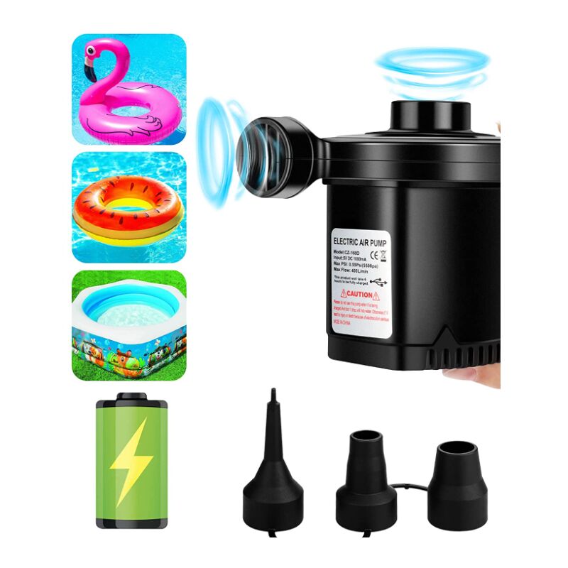 Design compatto e senza fili: leggero e portatile e funziona senza cavi. È il partner perfetto per attività all'aperto per frequentatori di piscine, campeggiatori, amanti della spiaggia, decoratori di eventi, viaggiatori e altro ancora gonfiaggio e deflazione 2 in 1: Le nostre pompe elettriche si gonfiano e sgonfiano rapidamente in pochi minuti, perfette per la maggior parte dei gonfiabili. Fornisce un'esperienza di gonfiaggio e sgonfiaggio più rapida ed efficiente rispetto alla maggior parte delle pompe manuali sul mercato. 3 dimensioni degli ugelli: La pompa dell'aria elettrica è dotata di 3 diverse dimensioni degli ugelli: S, M e L. S è adatto per anelli da nuoto, boe per piscine, cuscini gonfiabili, ecc., M è adatto per piscine per bambini, piscine, ecc., L è adatto per grandi giocattoli gonfiabili come materassi ad aria Ampiamente usato: La pompa ad aria elettrica è adatta per la maggior parte dei gonfiabili a bassa pressione, come materassi ad aria, materassini gonfiabili