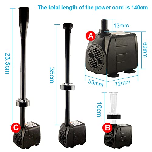 ⛲ Facile da pulire: questa pompa sommersa è facile da smontare e pulire senza attrezzi. Puoi smontarlo e lavarlo da solo per un periodo di tempo più lungo per prolungarne la vita.