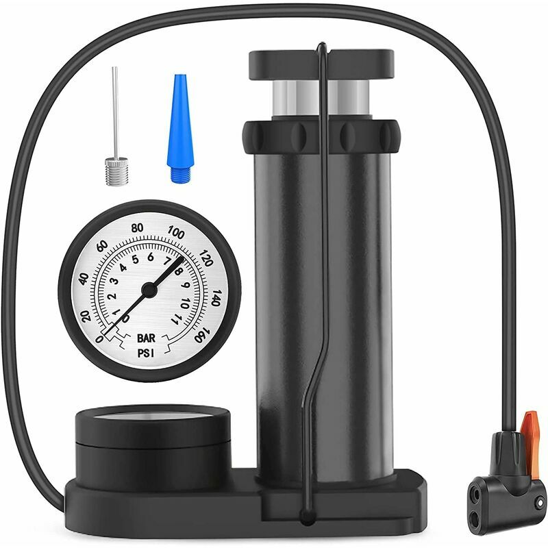 Forte pressione dell'aria per gonfiare, risparmiare fatica: pompa da bicicletta con manometro, visualizzazione in tempo reale dei dati sulla pressione dell'aria, calibrazione accurata. Mini pompa da pavimento ad alta pressione max 160 psi / 11 bar con manometro, la pressione dell'aria accurata può essere visualizzata quando gonfiata, rendendo più facile la visione visiva e regolando facilmente la pressione corretta prevenendo scoppi accidentali di pneumatici. Retrattile Pedale antiscivolo: il pedale della pompa a pedale ha una buona resistenza allo scivolamento grazie alla struttura della superficie seghettata. Il nostro gonfiatore per bicicletta portatile è dotato di pedali retrattili antiscivolo, maniglie in plastica incernierate e valvole resistenti che rendono questa pompa ad aria per bicicletta più stabile e meno scivolosa durante il gonfiaggio. Gonfiaggio rapido e che fa risparmiare tempo, puoi usarlo a lungo. Testa a doppia valvola con blocco del pollice: la nostra pompa di