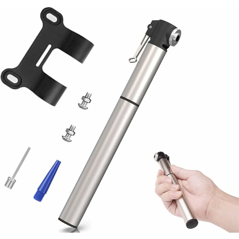 Design della pompa per mini bici - Il design compatto della pompa dell'aria per mini bici lo rende facile da sollevare con una mano. La pompa da bicicletta pesa solo 100 grammi, quindi è molto portatile. Supporta la piena funzione di una pompa ad aria di dimensioni normali e soddisfa le esigenze degli appassionati di ciclismo. 【Qualità e stabilità】 Realizzato in lega di alluminio di alta qualità con parti resistenti e precise, le sue prestazioni includono proprietà meccaniche, durata, resistenza alla corrosione, resistenza al calore, ecc. è eccellente per farti guidare in modo sicuro e confortevole e sopravvivere ad altri modelli più economici con parti in plastica. 【Supporto per telaio bici】 Si attacca saldamente alla tua bici e mantiene la tua pompa per pneumatici portatile saldamente in posizione. Potente ma leggero e facile da trasportare. 【Adatto a tutte le valvole】 Viene fornito con una parte superiore della valvola Presta e Schrader commutabile che è una perfetta mini pompa per