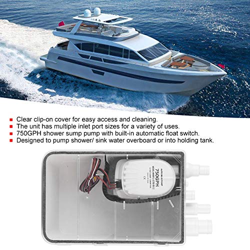 Pompa di scarico della doccia, DC 12V/24V 750GPH Pompa di scarico della doccia Interruttore automatico Scatola di drenaggio di sentina Ingresso multiplo per barca marina(12V)