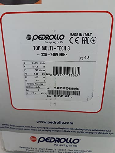POMPA SOMMERSA PEDROLLO CON PRESSCONTROL INTEGRATO TOP MULTI TECH 3 HP 0,75