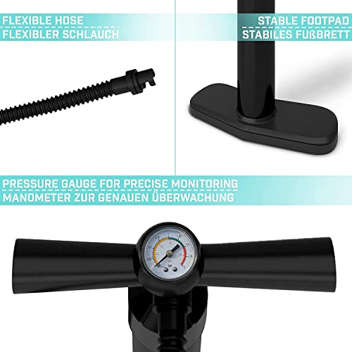 Pompa per Tavola SUP - Manuale, Pressione Massima 25 psi, con Manometro, Volume 1,8 l, Impugnatura Ergonomica - Pompa a Mano, per Stand Up Paddle Board Gonfiabile
