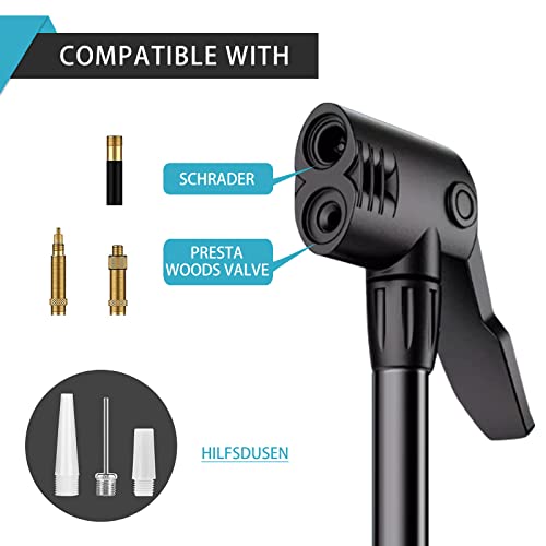 ✦【MAGGIORE PRESSIONE DELL'ARIA】 Pompa per bicicletta con una capacità di alta pressione fino a 160 PSI / 11 bar. Questa pompa ergonomica è ideale per una varietà di attività ricreative e giochi con la palla, sia interni che esterni. Il suo aumento di pressione atmosferica ti permette di gonfiare facilmente i pneumatici alla pressione richiesta.