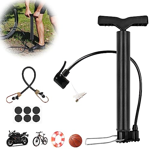 ✦【LEGGERA E PORTATILE】 Il set include: 1* pompa per bicicletta, 1* sacca per il trasporto, 1* mini cinturino, 6* adesivi per la riparazione dei pneumatici. Il tubo della pompa misura 32 cm/12,6 pollici di lunghezza, è leggero e l'impugnatura può essere rimossa per un facile trasporto in una sacca. Indispensabile per lunghi viaggi in bicicletta all'aperto.