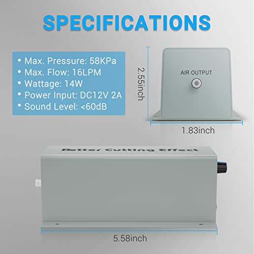 Kit pompa dell'aria con ugello ad aria per macchina per incisore laser Ortur, flusso d'aria 16L/min con tubo dell'aria da 6 mm, rimuove fumo e polvere, adatto alla maggior parte delle taglierina laser