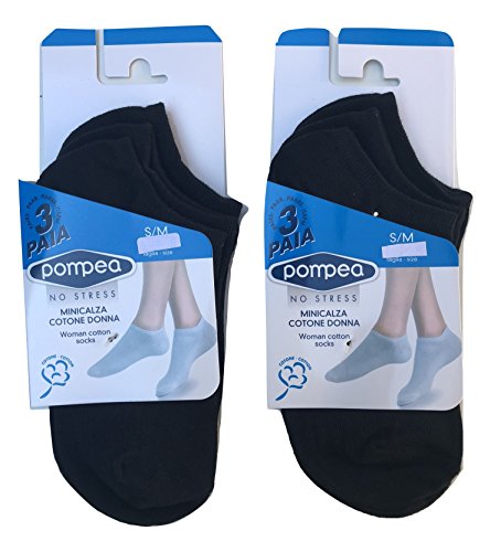 Pompea. 6 paia calzini fantasmini invisibili fresco cotone,modello unisex, vari assortimenti. (35/38, 6 paia nero)
