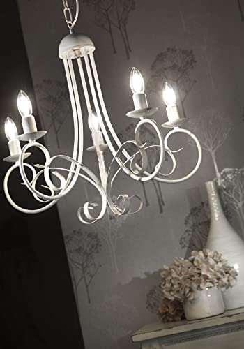ONLI Pompei - Lampadario 5 luci, stile classico ed elegante. Struttura in metallo. Bianco