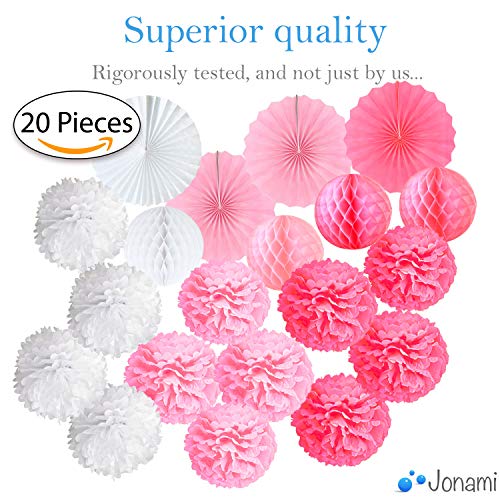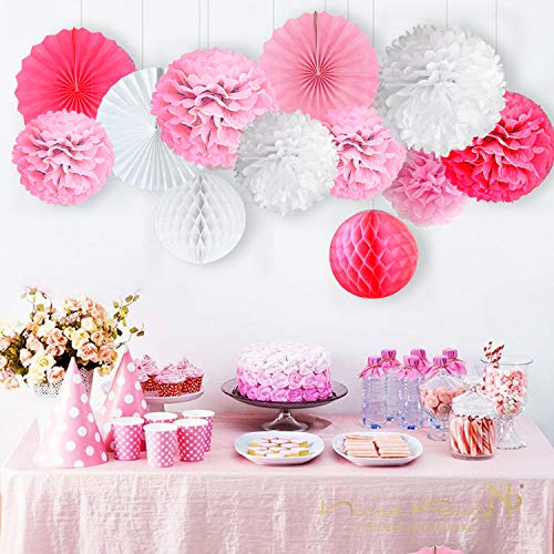 20 Pompom Rosa Decorazioni Battesimo Bimba Pom Pom Decorativi Rosa e Bianchi, Pompon Carta Velina e Ventagli di Carta. Ghirlande per Compleanno, Festa Nascita e Baby Shower -20 Pz-