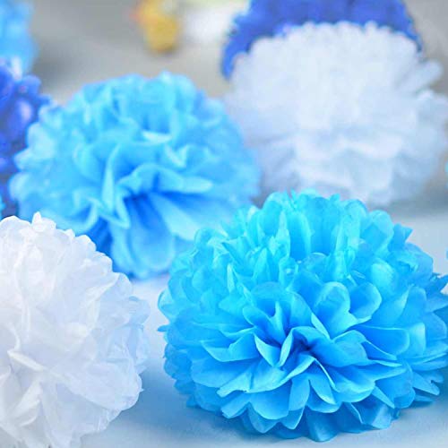 24 Pompom Blu Decorazioni Battesimo Bimbo Pom Pom Decorativi Blu e Bianchi, Pompon Carta Velina. Ghirlande per Compleanno, Festa Nascita e Baby Shower -24 Pz-