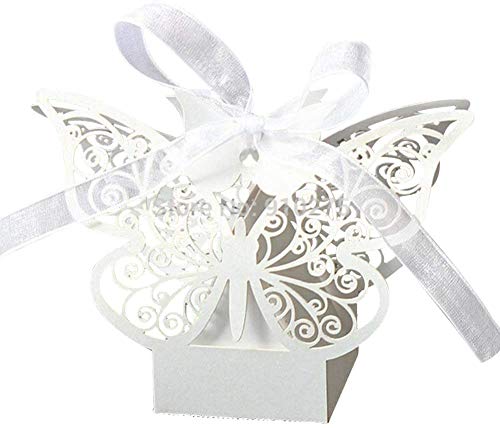 PONATIA 50pcs Farfalla Wedding Baby Cutout Candy Box Favors Gift Box Pearlescent (Bianco)