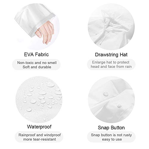 [Alta qualità e riutilizzabile]: realizzato al 100% in materiale EVA, atossico, traspirante. A differenza degli indumenti impermeabili usa e getta o in pvc, questo poncho antipioggia trasparente è resistente agli strappi e può essere utilizzato più volte a rapida asciugatura, ecologico. [Nota: petto: 130 cm, lunghezza del panno: 108 cm, lunghezza delle maniche: 76,5 cm. Si prega di controllare la taglia prima dell'acquisto.]