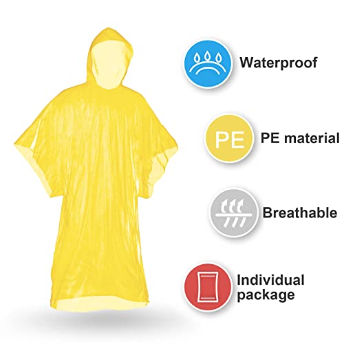 ☔☔ 【Abito perfetto】 I poncho impermeabili di emergenza sono dotati di cappuccio e coprono anche la maggior parte degli adulti appena sotto le ginocchia e i gomiti. I poncho usa e getta sono progettati in una taglia, adatta sia per uomini che per donne, giovani e meno giovani Quando piove o nevica improvvisamente, è il tuo compagno e la tua scelta ideale. Usa i poncho per adulti in plastica colorata per distinguerti dai tuoi amici.