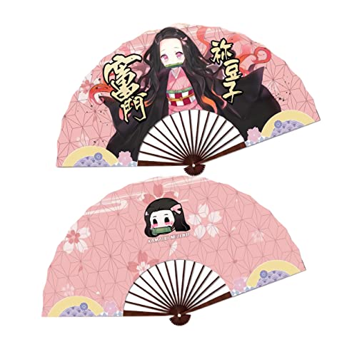 PonPom Demon Slayer pieghevole mano Rave Fan,Anime Cosplay puntelli per donne uomini (Kamado Nezuko)
