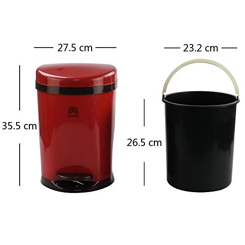 Ponpong Pattumiera a Pedale 10 Litri, Colore Rosso, 1 Confezione