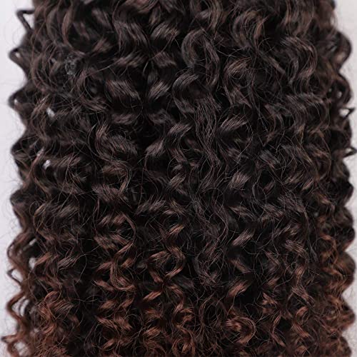 Pontail Extension Ombre marrone coda di cavallo lunga Kinky curly crespi con coulisse, extension per capelli da donna afro treccia ponytail (nero ombre marrone 2/33 circa 35 cm) 059F