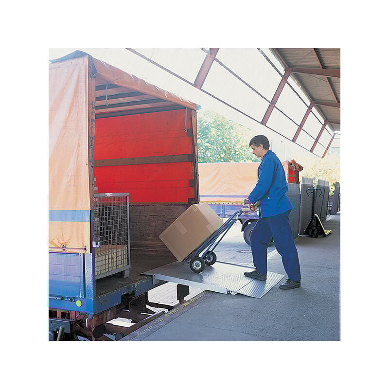 USO - Rampa per banchina per collegare la banchina e la rampa per le operazioni di carico e scarico - Il profilo in gomma assicura una perfetta aderenza del ponte al suolo - Ideale per la movimentazione di merci con impilatori o carrelli elevatori - Lo sportello incernierato consente l'accesso alle attrezzature con rotelle CARATTERISTICHE - Profilo in gomma sotto lo sportello - Inalterabile e senza manutenzione - Realizzato con profili a nido d'ape rinforzati per resistere alla perforazione di rulli e ruote gommate