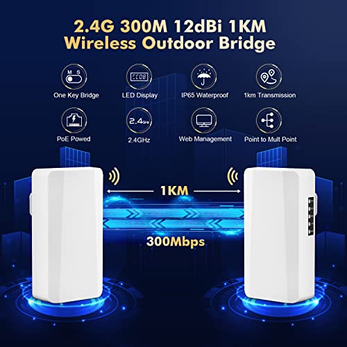 Ponte Wireless per Esterni Ponte WiFi Punto a Punto con Connessione Ethernet 2.4GHz 500m a 1km Distanza 100Mbps 24V Adattatore PoE