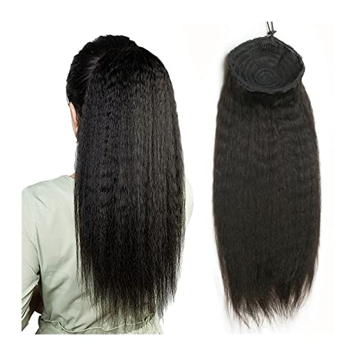 Ponytail Extension Coda Capelli Estensione coda di cavallo capelli veri lisci crespi for donne nere Nero naturale 12-26 "Clip a sbuffo afro in coulisse Coda di cavallo Estensioni for capelli pezzi cli