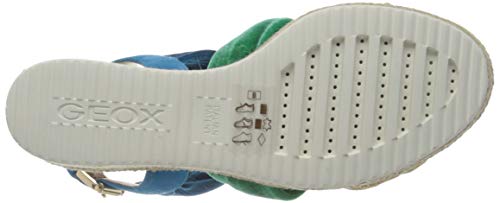 Geox D Ponza B, Sandali con Plateau Donna, Blu (Gold/Turquoise C2213), 38.5 EU