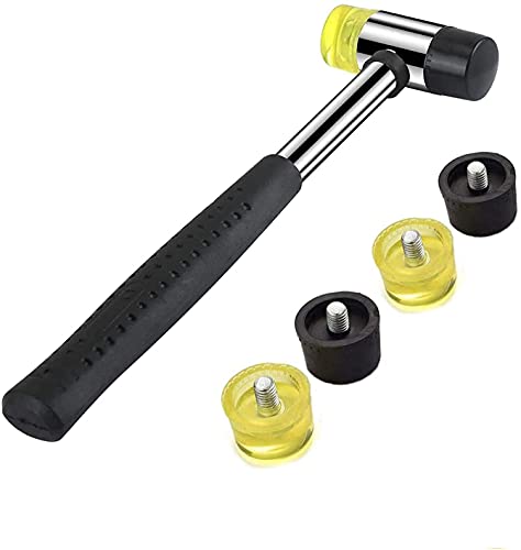 POOPHUNS Martello in gomma da 35 mm, manico in gomma antiscivolo, manico in gomma morbida a doppia faccia con 4 pezzi testa in gomma sostituibile per lavori in pelle, gioielli riparazione