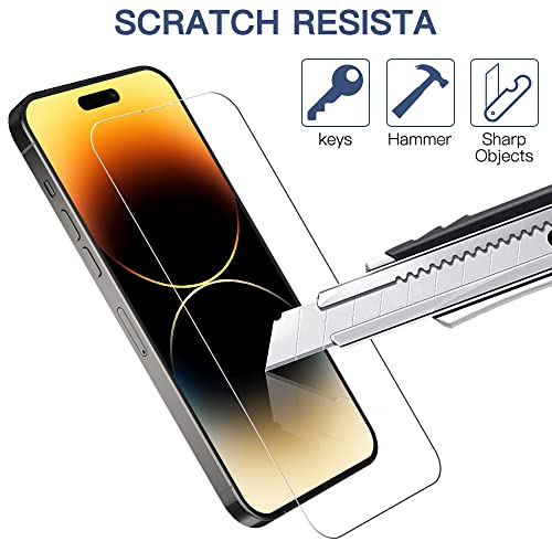 POOPHUNS Pellicola Vetro Temperato per iPhone 14 PRO 6.1 Pollici, Pellicola Protettiva HD trasparente, Durezza 9H, Bordo Rotondo 3D, Anti Graffio, Senza Bolle - 3 Pezzi