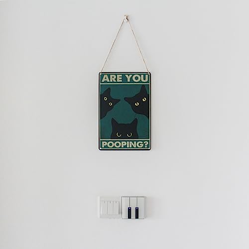 Are you pooping?" Divertente cartello di gatto nero - Decorazione da parete per bagno, 30 x 20 cm (EN 2337)