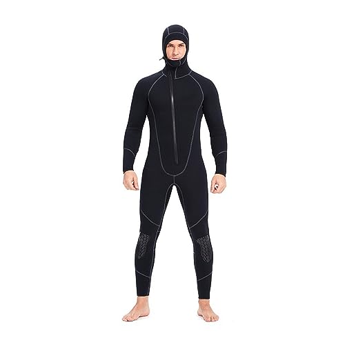 POOSR 3MM Muta Neutra Muta in Neoprene Muta da Surf Monopezzo con Cappuccio Tuta da Surf Frontale Zip Costume da Bagno per Protezione dal Freddo e dal Sole,Nero,M