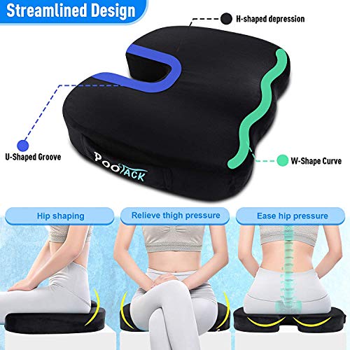 POOTACK Cuscino per Sedia Da Ufficio, Cuscino per Sedile Memory Foam, Cuscini per Sedie con in Gel, per Piaghe da Decubito e per Dolore al Coccige, Cuscini Sedie per Auto, Sedia a Rotelle o Ufficio
