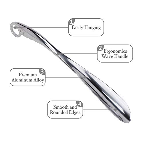 POOTACK Smartjoy Calzascarpe Metallo Lungo in Acciaio Inox con Manico ad Anello per Scarpe e Stivali - Spazio Salva - Adatto a tutte le Misure di Piede - Può Essere Utilizzato per l'auto-difesa (42CM)