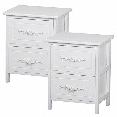 Popamazing - Coppia di 2 cassetti in stile shabby chic francese, bianco legno comodino comodino armadi in legno con cassetti