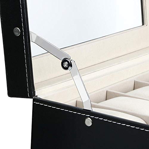Popamazing Espositore per orologi/gioielli da uomo, in pelle nera, con vetro, Black, 20 Slots