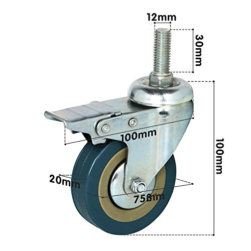 Popamazing - ruote girevoli in gomma con freno, 75 mm, resistenti, per trolley e mobili;