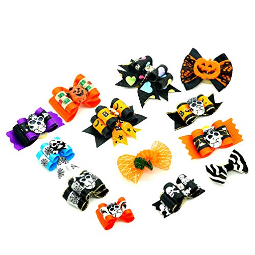 POPETPOP 24pcs Halloween Fiocco di Pelo di Cane con Anello Elastico Accessori per toelettatura per Animali Domestici Accessori per Capelli Copricapo per Cuccioli di Gatto - Colori Misti