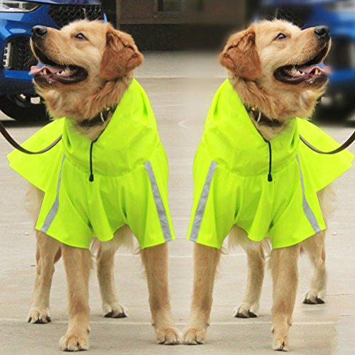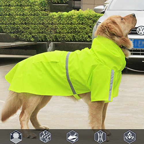 POPETPOP Impermeabile per cani con striscia riflettente per pioggia Cappuccio per pioggia riflettente per cane Slicker Giacca antipioggia per cane e cucciolo Taglia L (Verde)