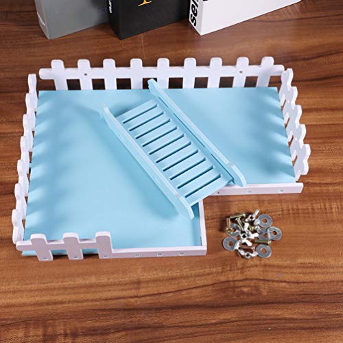 POPETPOP Pedana Scaletta in Legno per Animali con Recinzione per Criceto Gerbil Topo Cincillà Cavia Scoiattolo Taglia S Blu