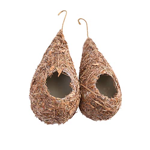 POPETPOP 2 Pezzi Nido Duccello Tessitura Appesa Erba Fatta a Mano Nido Dorme Pappagallo Pesce Persico Ciondolo Nido di Uccello per Balcone Casa di Uccelli Uccelli Forniture per Casa Gabbia Giardino