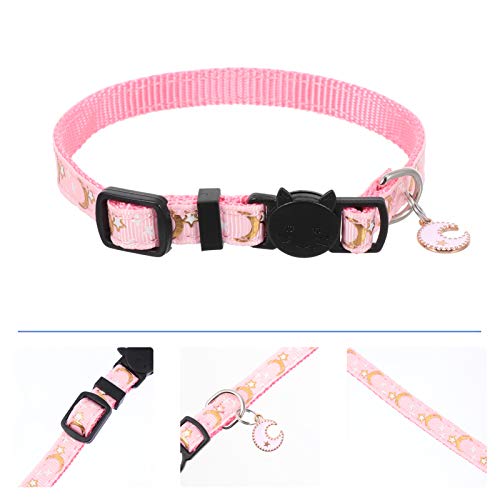 POPETPOP Ramadan Eid Mubarak Collare Dell'animale Domestico Lune E Stelle Modello Stampato Gattino Gatto Collare con Pendente Rosa1