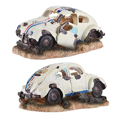 POPETPOP Simulazione Carro Armato di Pesci Relitto Auto Ornamento per Arredamento Acquario - Ornamenti in Resina Decorazioni per Acquari Pesci Piccola Capanna in Cuoio - Accessori per Pesci Betta