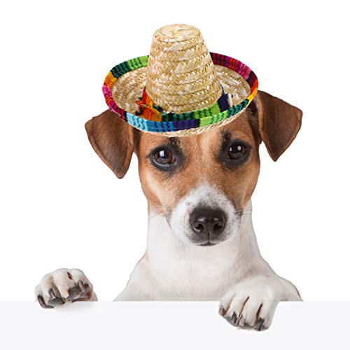 POPETPOP Sombrero per Cani Cappello da Paglia Regolabile in Stile Messicano per Cani da Cucciolo Chihuahua Gatti Protezione Solare Vestito da Festa Costume