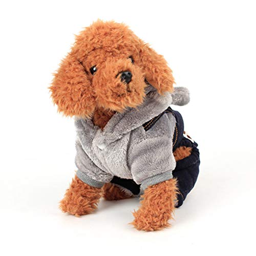 POPETPOP Vestiti per Cani e Gatti Cappotto Invernale Caldo Orso della Zampa Stampato con Cappuccio Tuta Costumi Abbigliamento a Quattro Zampe per Cani Piccola e Media - Taglia S (Grigio)