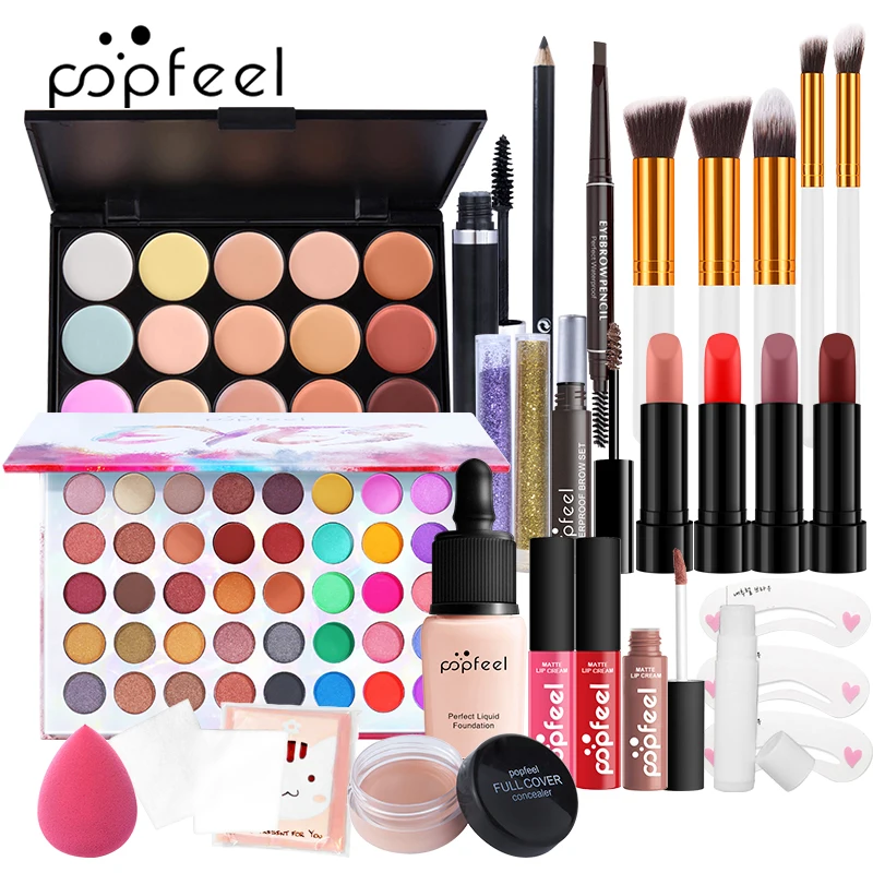 POPFEEL All In One Makeup Kit(Eyeshadow, LiGloss,Lipstick,Brushes,Eyebrow,Concealer)Beauty Cosmetic Bag