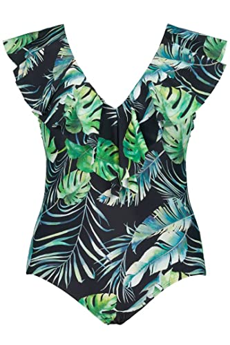 ULLA POPKEN Badeanzug, Dschungel, Softcups, V-Ausschnitt, Volant Costume Intero, Dunkelgrau, 52 Donna